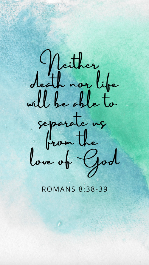 "For I am convinced that neither death nor life, neither angels nor demons, neither the present nor the future, nor any powers, 39 neither height nor depth, nor anything else in all creation, will be able to separate us from the love of God that is in Christ Jesus our Lord." – Romans 8:38-39