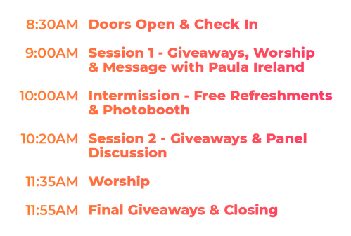 The whole event is designed to help you grow in your faith in Jesus and connect you to other women. Through engaging speakers, reflective moments, and special times interacting with each other, we hope the day refreshes, inspires and deepens your faith. Check out the schedule above for a better look at the day!